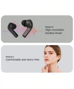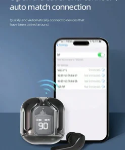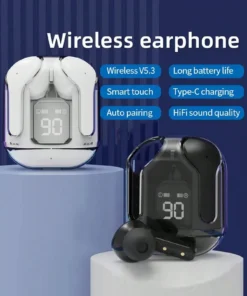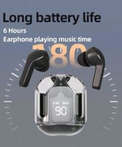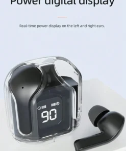 سماعة لاسلكية شفافة قليلة التأخير بشاشة تعمل باللمس للرياضة والألعاب والعمل في المكتب، بها شاشة رقمية، تحكم في الصوت والصوت، وميكروفون ومنفذ شحن Type C