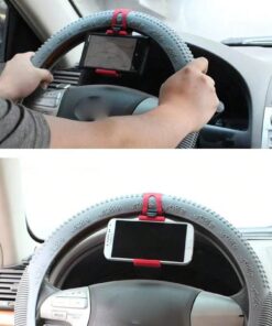 1pc Clip-On Car Steering Wheel Phone Holder Gps Navigation Mount (Red), Color: Black