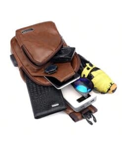 SHEIN 1pc Brown Pu Leather Leisure & Fashionable One Shoulder Backpack