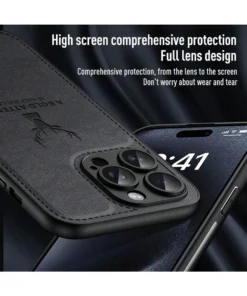 SHEIN 1pc Deer Antler Pattern Luxury Full Coverage Leather Shockproof Anti-Scratch Phone Case