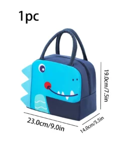1pc Fabric Lunch Bag, Cute Cartoon Dinosaur Print Waterproof Reusable Lunch Bag For Office Work School Picnic Beach FROM SHEIN