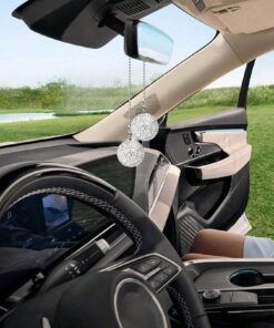 SHEIN 1pc White Crystal Ball Car Rearview Mirror Hanging Ornament