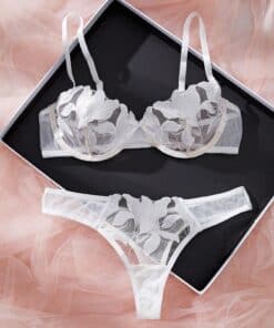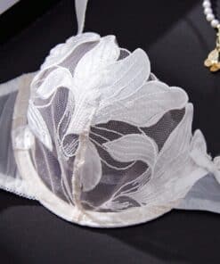 SHEIN 2pcs/Set Romantic White Burning Flower & Maple Leaf Sexy Lingerie Set
