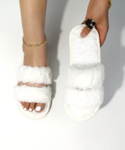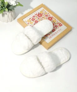 SHEIN 2pcs Women’s Fashion Fluffy White Bridesmaid Slippers, Soft Bottom FROM SHEIN