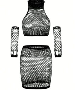 SHEIN 4pcs/Set Rhinestone Studded Sexy One-Piece Fishnet Bodysuit, Perfect