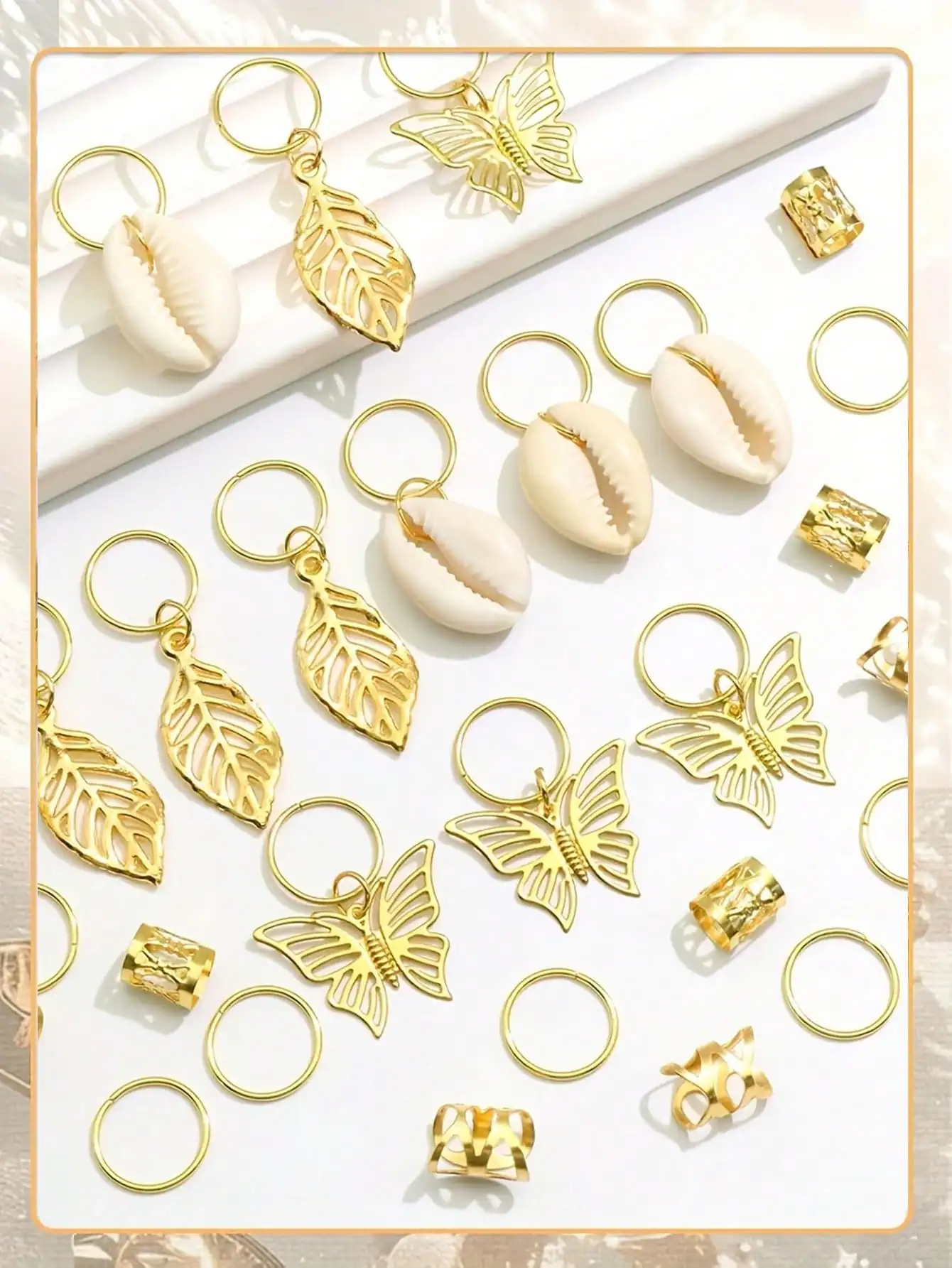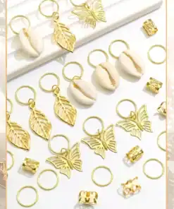 SHEIN 50PCS Butterfly Hair Jewelry Gold Dreadlock Cuffs For Dreadlocks, Shell Loc Jewelry