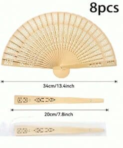 8pcs Elegant Pure Wood Fans, Handmade Carved Wooden Fan, Gift Fan For Wedding Party Performance – Wood Carving Printed Vintage Folding Fan, Antique Craft Fan, Hollow Out, Portable Dance Decorative Fan BY SHEIN