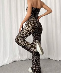 SHEIN EZwear Women Leopard Print Bandeau Jumpsuit