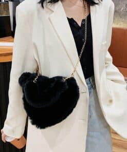SHEIN Furry Purse For Girls Heart Shaped Fluffy Handbag