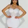 Slaydiva 2025 Beach New Spring And Summer Casual Holiday Halterneck Small Stand-Up Collar Sleeveless Backless Ruffled Hem Decorated Mini Shorts Wavy Texture Orange Women’s Tight Jumpsuit BY SHEIN